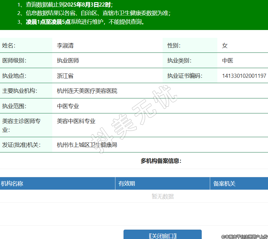 姓名:李淑清性別:女醫(yī)師級別:執(zhí)業(yè)醫(yī)師執(zhí)業(yè)類別:中醫(yī)執(zhí)業(yè)地點:浙江省執(zhí)業(yè)證書編碼:141330102001197主要執(zhí)業(yè)機構(gòu):杭州連天美醫(yī)療美容醫(yī)院執(zhí)業(yè)范圍:中醫(yī)專業(yè)美容主診醫(yī)師專業(yè):美容中醫(yī)科專業(yè)發(fā)證(批準)機關(guān):杭州市上城區(qū)衛(wèi)生健康局 -