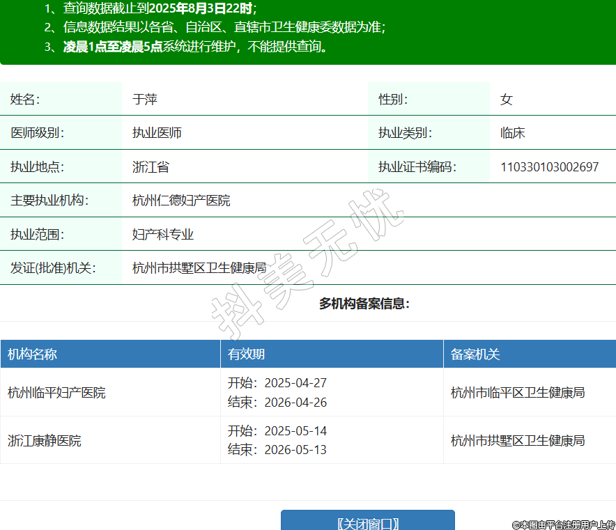 姓名:于萍性別:女醫(yī)師級(jí)別:執(zhí)業(yè)醫(yī)師執(zhí)業(yè)類別:臨床執(zhí)業(yè)地點(diǎn):浙江省執(zhí)業(yè)證書編碼:110330103002697主要執(zhí)業(yè)機(jī)構(gòu):杭州仁德婦產(chǎn)醫(yī)院執(zhí)業(yè)范圍:婦產(chǎn)科專業(yè)發(fā)證(批準(zhǔn))機(jī)關(guān):杭州市拱墅區(qū)衛(wèi)生健康局多機(jī)構(gòu)備案信息:機(jī)構(gòu)名稱 有效期 備案機(jī)關(guān) 杭州臨平婦產(chǎn)醫(yī)院 開始:2025-04-27結(jié)束:2026-04-26杭州市臨平區(qū)衛(wèi)生健康局 浙江康靜醫(yī)院 開始:2025-05-14結(jié)束:2026-05-13杭州市拱墅區(qū)衛(wèi)生健康局 -