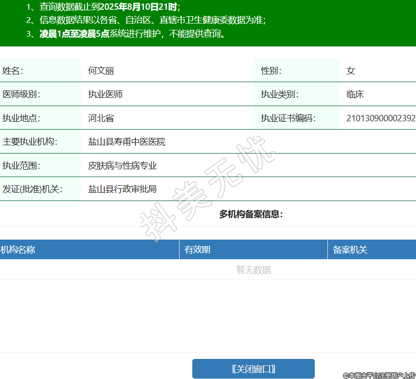 姓名:何文麗性別:女醫(yī)師級(jí)別:執(zhí)業(yè)醫(yī)師執(zhí)業(yè)類(lèi)別:臨床執(zhí)業(yè)地點(diǎn):河北省執(zhí)業(yè)證書(shū)編碼:210130900002392主要執(zhí)業(yè)機(jī)構(gòu):鹽山縣壽甫中醫(yī)醫(yī)院執(zhí)業(yè)范圍:皮膚病與性病專(zhuān)業(yè)發(fā)證(批準(zhǔn))機(jī)關(guān):鹽山縣行政審批局 -