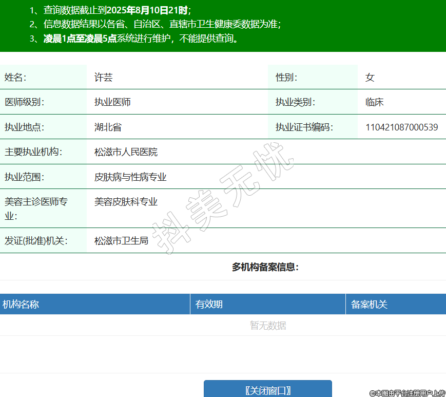 姓名:許蕓性別:女醫(yī)師級(jí)別:執(zhí)業(yè)醫(yī)師執(zhí)業(yè)類別:臨床執(zhí)業(yè)地點(diǎn):湖北省執(zhí)業(yè)證書編碼:110421087000539主要執(zhí)業(yè)機(jī)構(gòu):松滋市人民醫(yī)院執(zhí)業(yè)范圍:皮膚病與性病專業(yè)美容主診醫(yī)師專業(yè):美容皮膚科專業(yè)發(fā)證(批準(zhǔn))機(jī)關(guān):松滋市衛(wèi)生局 -