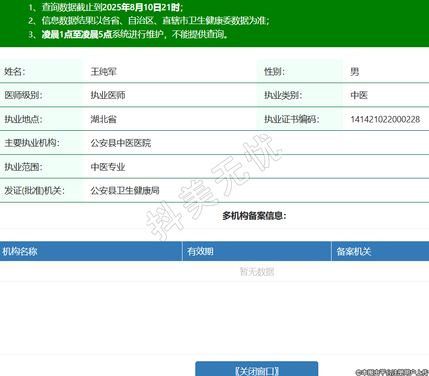 姓名:王純軍性別:男醫(yī)師級別:執(zhí)業(yè)醫(yī)師執(zhí)業(yè)類別:中醫(yī)執(zhí)業(yè)地點(diǎn):湖北省執(zhí)業(yè)證書編碼:141421022000228主要執(zhí)業(yè)機(jī)構(gòu):公安縣中醫(yī)醫(yī)院執(zhí)業(yè)范圍:中醫(yī)專業(yè)發(fā)證(批準(zhǔn))機(jī)關(guān):公安縣衛(wèi)生健康局 -
