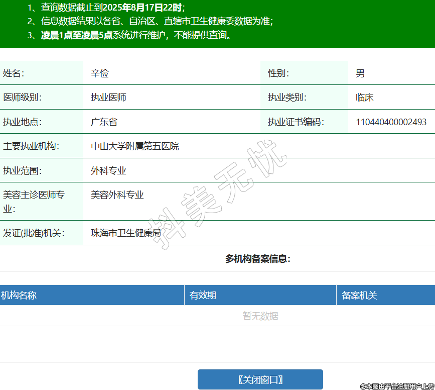姓名:辛儉性別:男醫(yī)師級別:執(zhí)業(yè)醫(yī)師執(zhí)業(yè)類別:臨床執(zhí)業(yè)地點:廣東省執(zhí)業(yè)證書編碼:110440400002493主要執(zhí)業(yè)機構(gòu):中山大學(xué)附屬第五醫(yī)院執(zhí)業(yè)范圍:外科專業(yè)美容主診醫(yī)師專業(yè):美容外科專業(yè)發(fā)證(批準)機關(guān):珠海市衛(wèi)生健康局 -