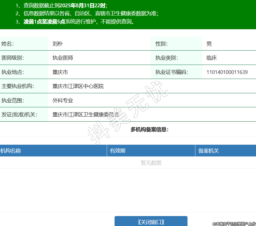 姓名:劉樸性別:男醫(yī)師級別:執(zhí)業(yè)醫(yī)師執(zhí)業(yè)類別:臨床執(zhí)業(yè)地點(diǎn):重慶市執(zhí)業(yè)證書編碼:110140100011639主要執(zhí)業(yè)機(jī)構(gòu):重慶市江津區(qū)中心醫(yī)院執(zhí)業(yè)范圍:外科專業(yè)發(fā)證(批準(zhǔn))機(jī)關(guān):重慶市江津區(qū)衛(wèi)生健康委員會(huì) -