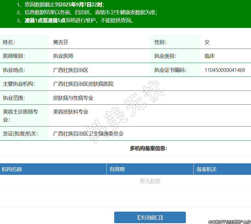 姓名:黃吉芬性別:女醫(yī)師級別:執(zhí)業(yè)醫(yī)師執(zhí)業(yè)類別:臨床執(zhí)業(yè)地點:廣西壯族自治區(qū)執(zhí)業(yè)證書編碼:110450000041469主要執(zhí)業(yè)機(jī)構(gòu):廣西壯族自治區(qū)皮膚病醫(yī)院執(zhí)業(yè)范圍:皮膚病與性病專業(yè)美容主診醫(yī)師專業(yè):美容皮膚科專業(yè)發(fā)證(批準(zhǔn))機(jī)關(guān):廣西壯族自治區(qū)衛(wèi)生健康委員會 -