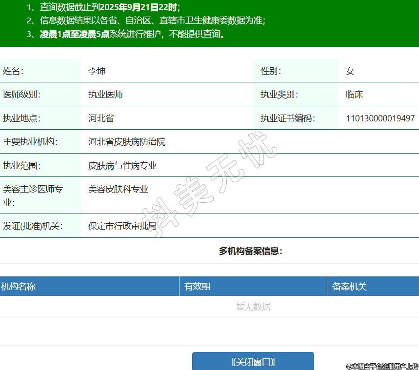 姓名:李坤性別:女醫(yī)師級別:執(zhí)業(yè)醫(yī)師執(zhí)業(yè)類別:臨床執(zhí)業(yè)地點:河北省執(zhí)業(yè)證書編碼:110130000019497主要執(zhí)業(yè)機構(gòu):河北省皮膚病防治院執(zhí)業(yè)范圍:皮膚病與性病專業(yè)美容主診醫(yī)師專業(yè):美容皮膚科專業(yè)發(fā)證(批準)機關(guān):保定市行政審批局 -