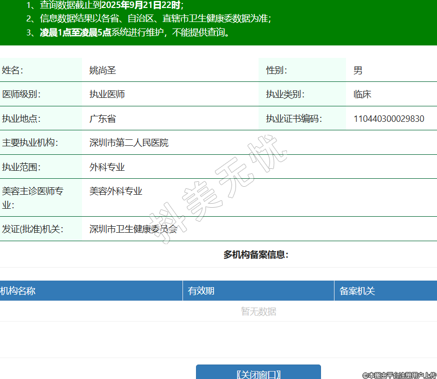 姓名:姚尚圣性別:男醫(yī)師級別:執(zhí)業(yè)醫(yī)師執(zhí)業(yè)類別:臨床執(zhí)業(yè)地點:廣東省執(zhí)業(yè)證書編碼:110440300029830主要執(zhí)業(yè)機構:深圳市第二人民醫(yī)院執(zhí)業(yè)范圍:外科專業(yè)美容主診醫(yī)師專業(yè):美容外科專業(yè)發(fā)證(批準)機關:深圳市衛(wèi)生健康委員會 -