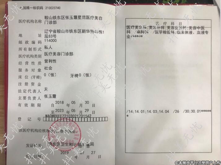 醫(yī)療機(jī)構(gòu)名稱:鞍山鐵東區(qū)張玉霞星范醫(yī)療美容門(mén)診部