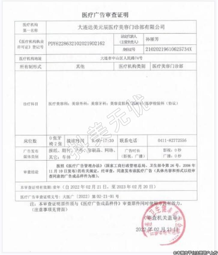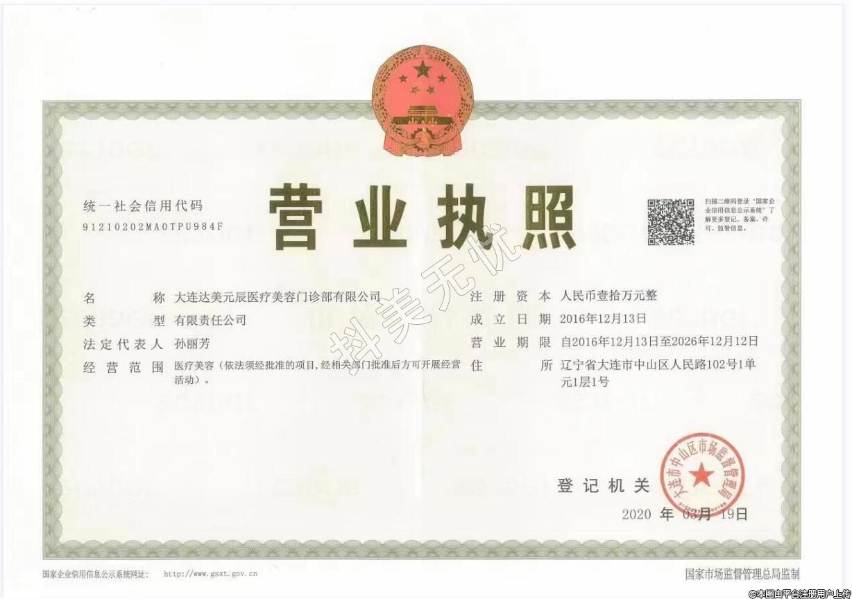 醫(yī)療機(jī)構(gòu)名稱(chēng):大連達(dá)美元辰醫(yī)療美容門(mén)診部有限公司