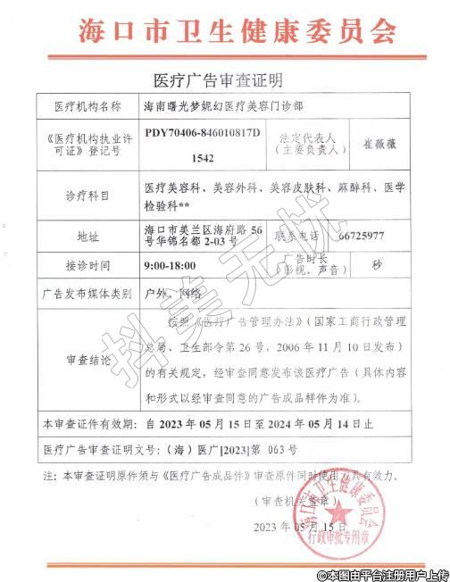 機(jī)構(gòu)名稱:海南曙光夢(mèng)妮幻醫(yī)療美容門診部