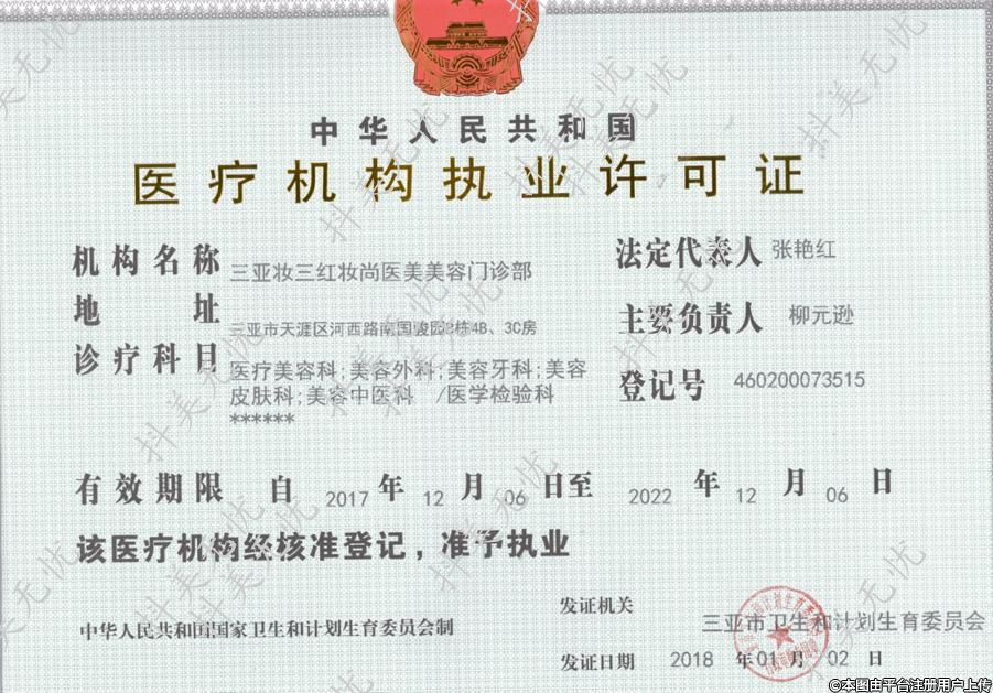 發(fā)證機關(guān):三亞市衛(wèi)生和計劃生育委員會