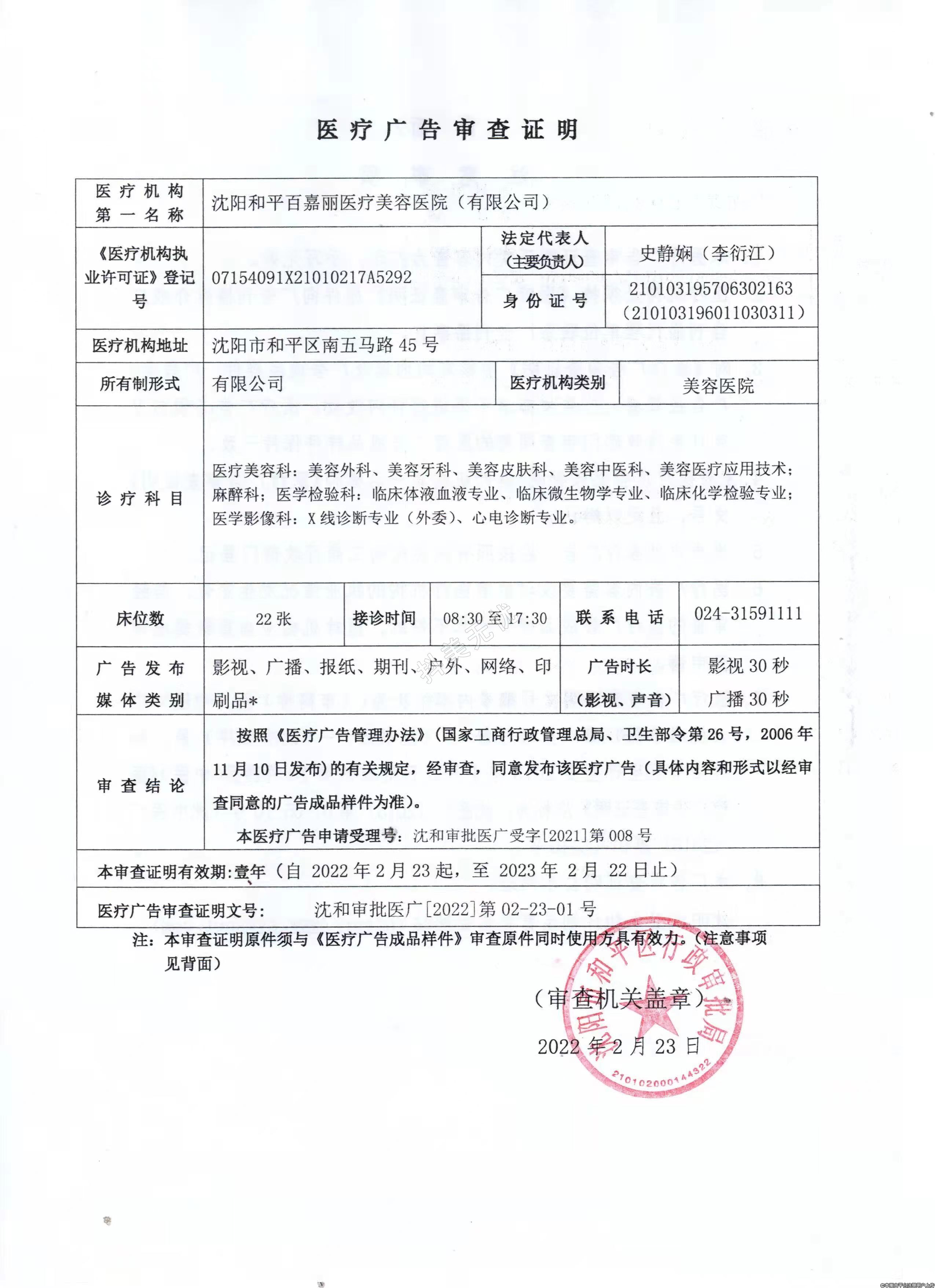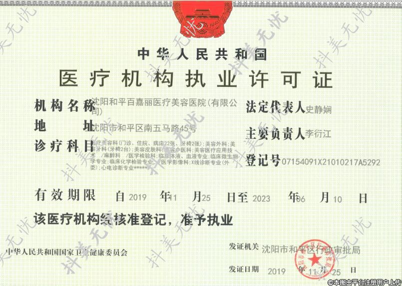 機(jī)構(gòu)名稱:沈陽(yáng)和平百嘉麗醫(yī)療美容醫(yī)院(有限公司)