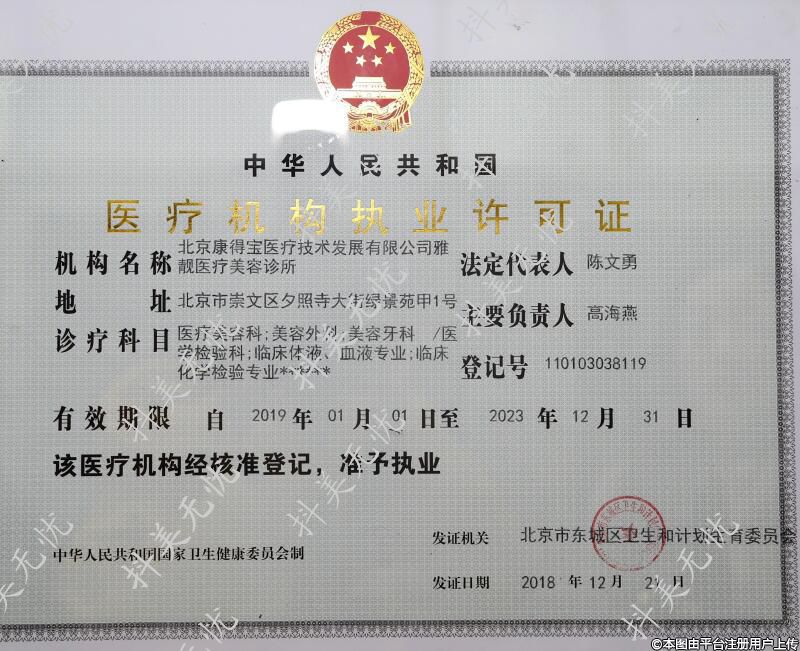 機構(gòu)名稱:北京康得寶醫(yī)療技術發(fā)展有限公司雅靚醫(yī)療美容診所