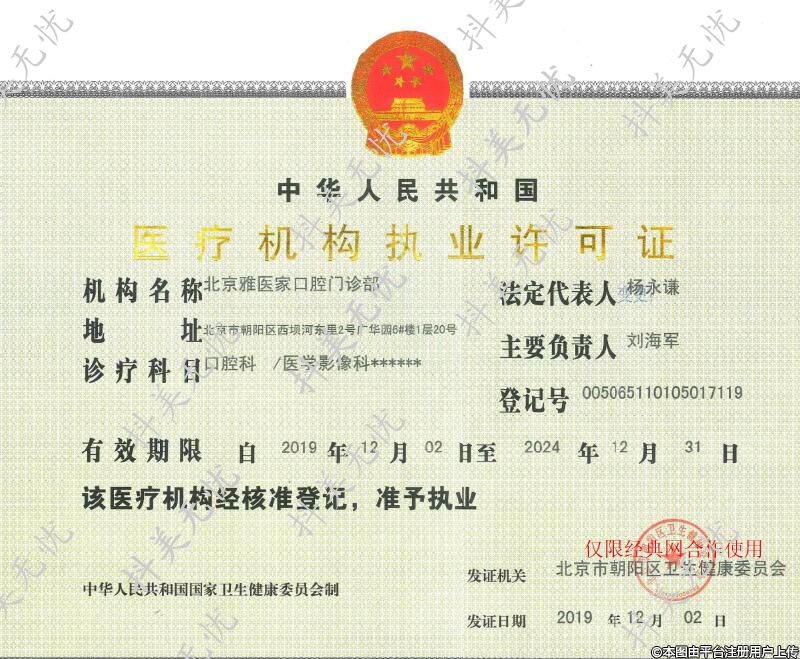 發(fā)證機關(guān):北京市朝陽區(qū)衛(wèi)生健康委員會