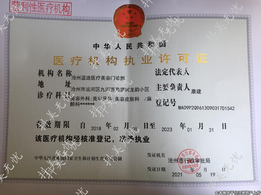 機(jī)構(gòu)名稱:滄州藍(lán)途醫(yī)療美容門診部