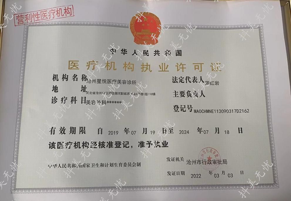 機(jī)構(gòu)名稱:滄州星悅醫(yī)療美容診所