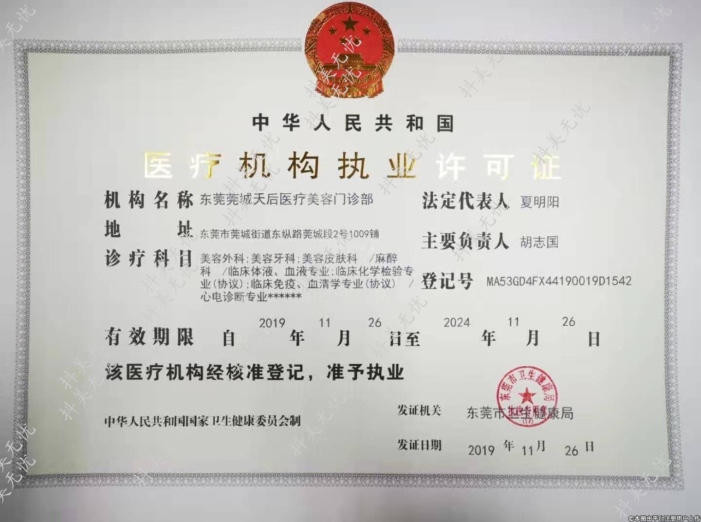 機(jī)構(gòu)名稱(chēng):東莞莞城天后醫(yī)療美容門(mén)診部