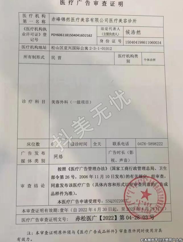 機構(gòu)名稱:赤峰錦然醫(yī)療美容有限公司療美容診所