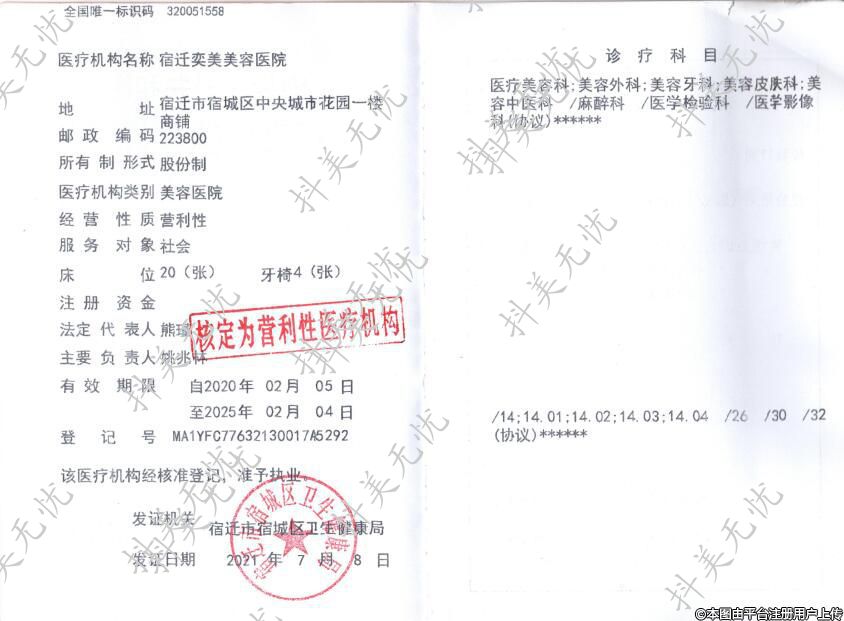 醫(yī)療機(jī)構(gòu)名稱:宿遷奕美美容醫(yī)院