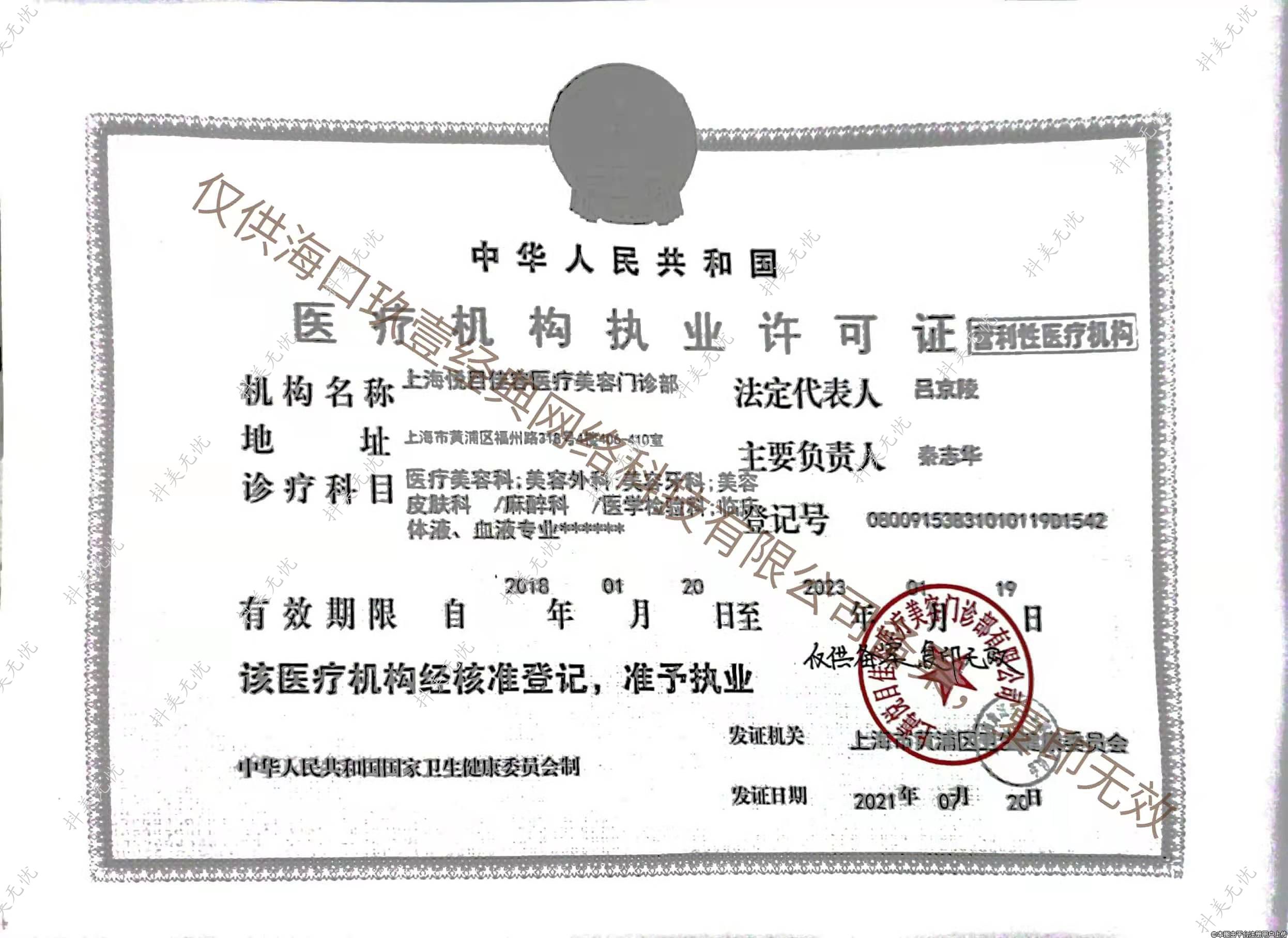 發(fā)證機關(guān):上海市黃浦區(qū)衛(wèi)生健康委員會