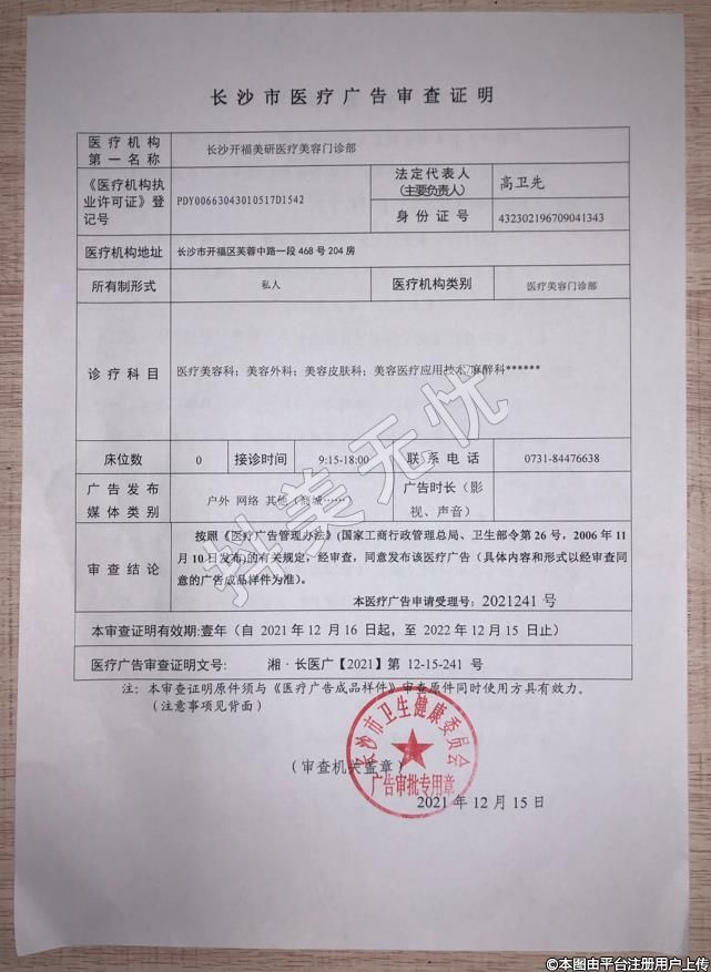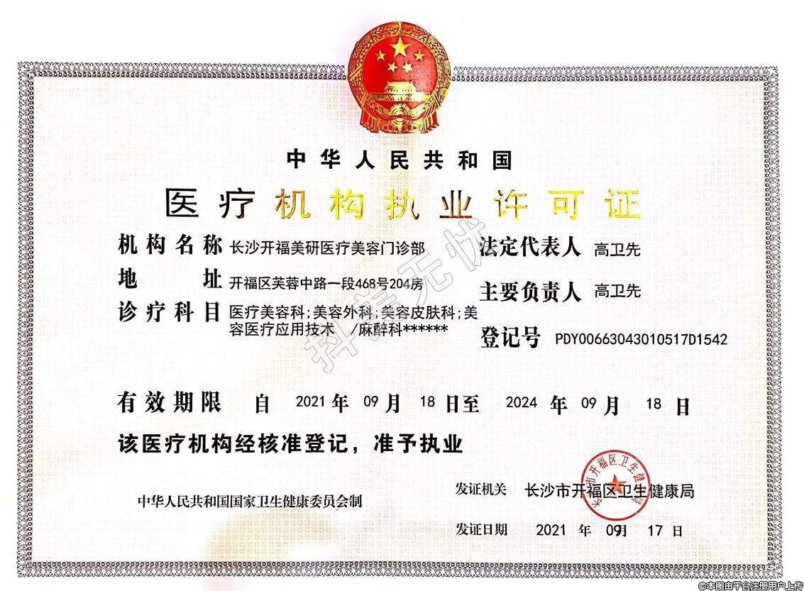 發(fā)證機(jī)關(guān):長沙市開福區(qū)衛(wèi)生健康局