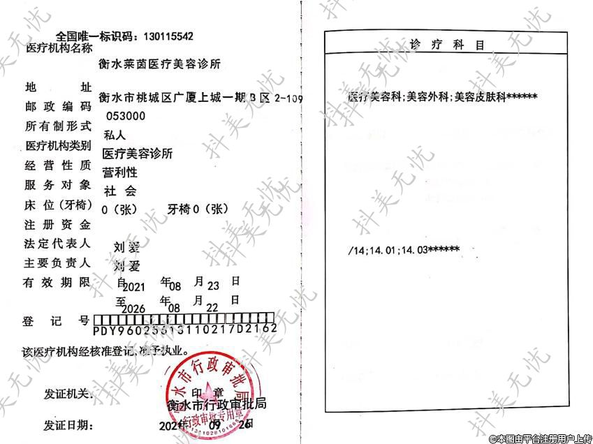 醫(yī)療機(jī)構(gòu)名稱:衡水萊茵醫(yī)療美容診所