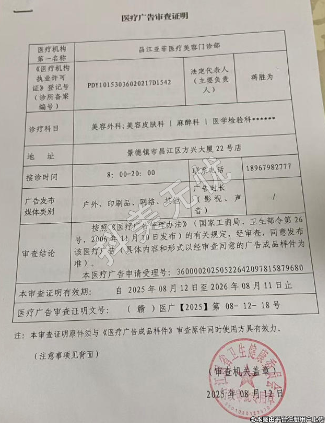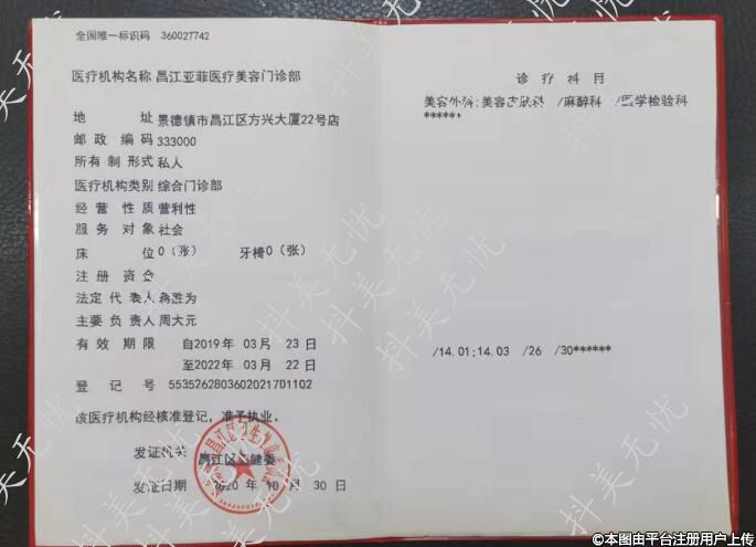 診療科目:美容外科;美容皮膚科/麻醉科/醫(yī)學(xué)檢驗(yàn)科******/14.01;14.03/26/30******