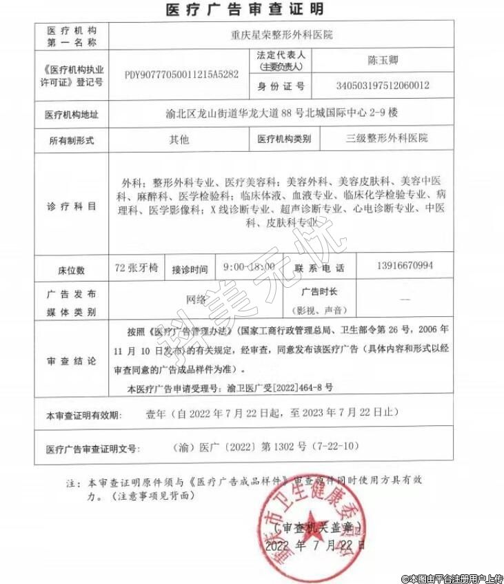 醫(yī)療機(jī)構(gòu)名稱:重慶星榮整形外科醫(yī)院