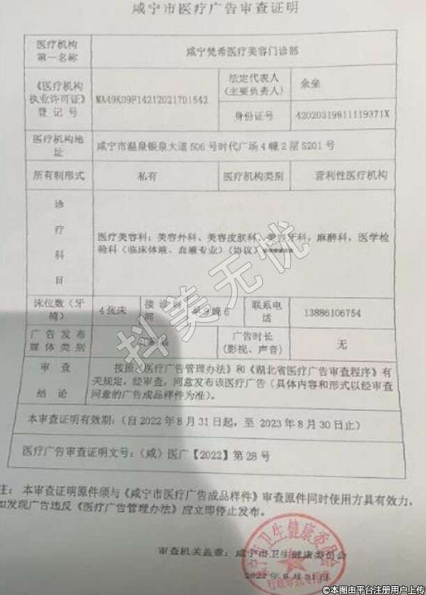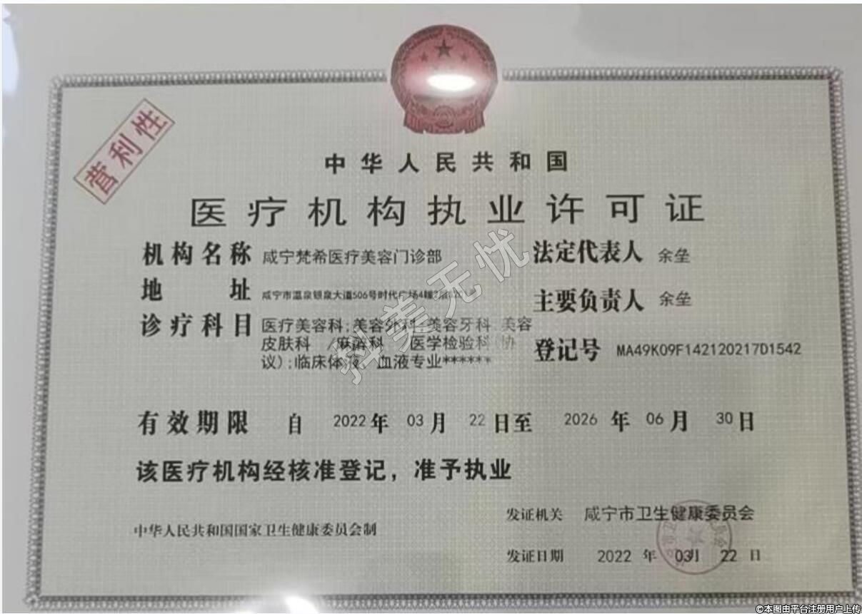 機(jī)構(gòu)名稱:咸寧梵希醫(yī)療美容門診部