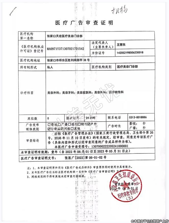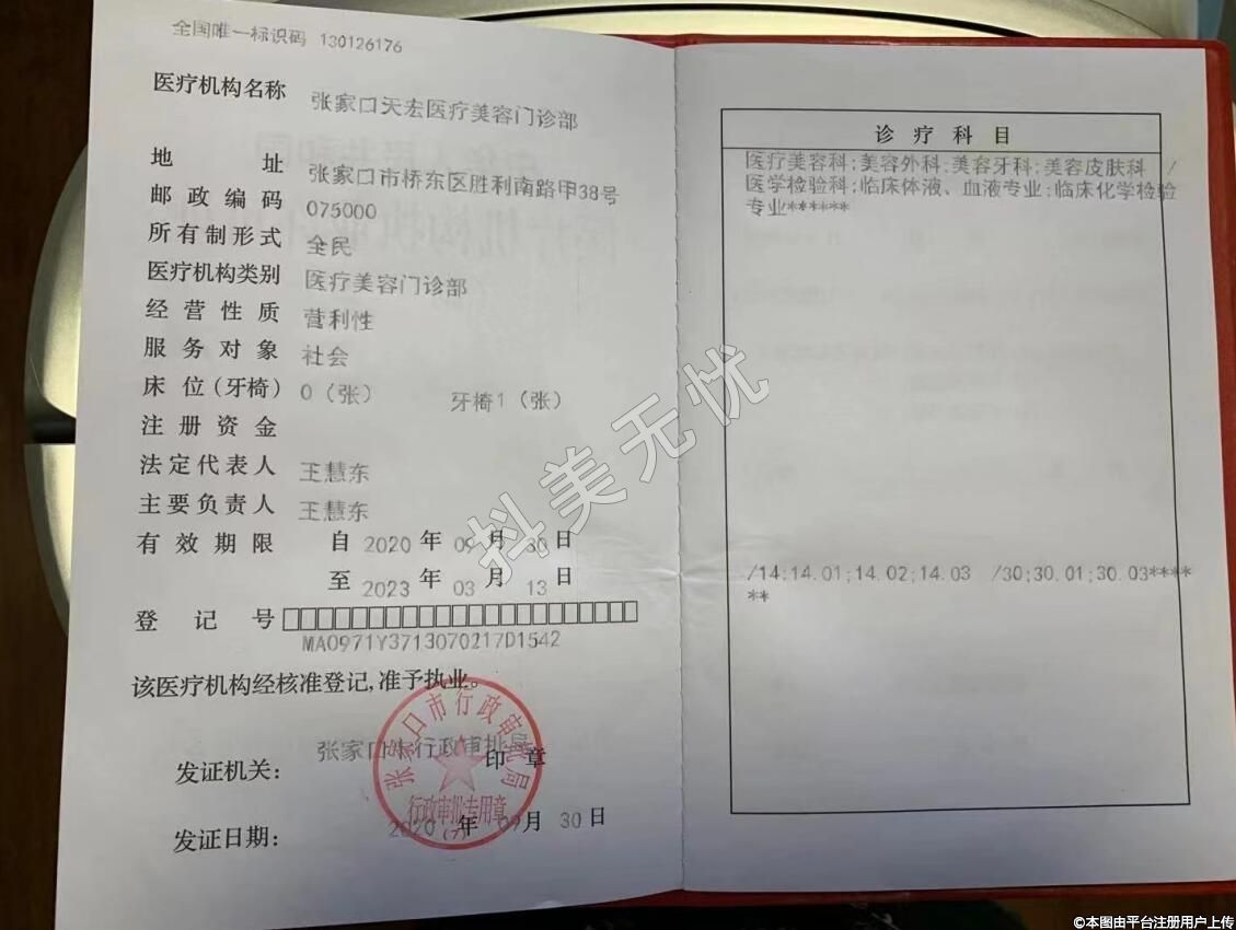 醫(yī)療機構(gòu)名稱:張家口天宏醫(yī)療美容門診部
