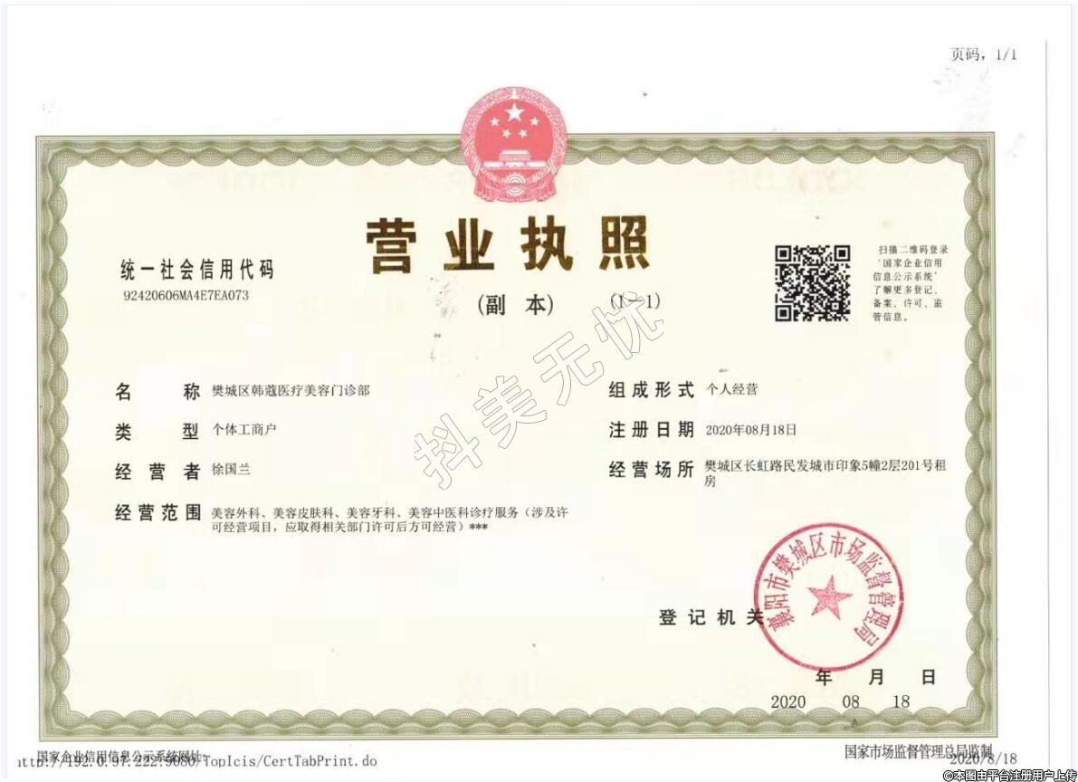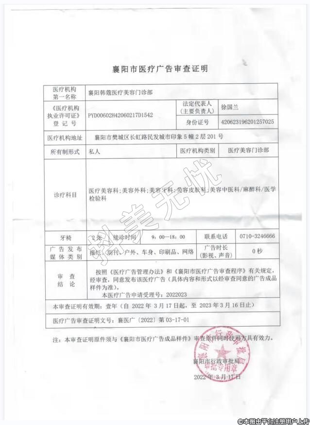 醫(yī)療機(jī)構(gòu)名稱:襄陽韓蔻醫(yī)療美容門診部