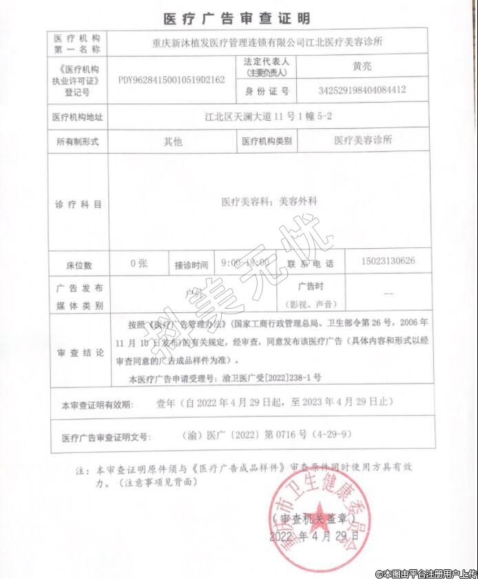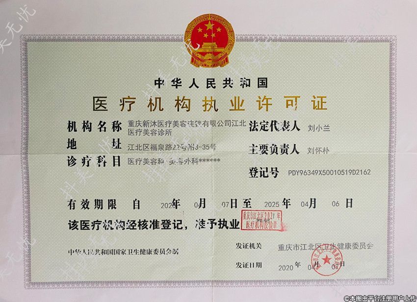 醫(yī)療機(jī)構(gòu)名稱:重慶新沐醫(yī)療美容連鎖有限公司江北醫(yī)療美容診所