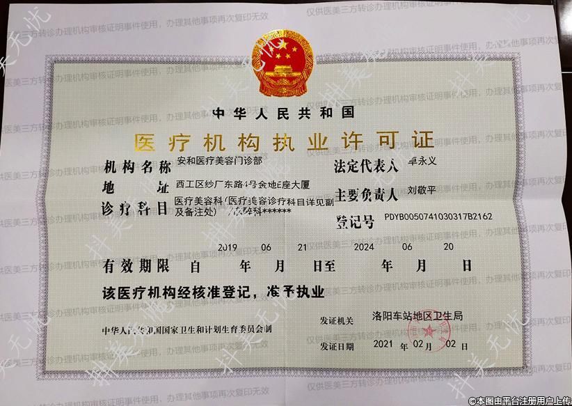 診療科目:醫(yī)療美容科(醫(yī)療美容診療科目詳見副及備注處)/麻醉科******