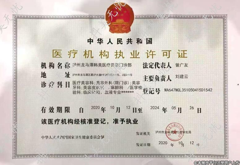 機構(gòu)名稱:瀘州龍馬潭韓美醫(yī)療美容門診部