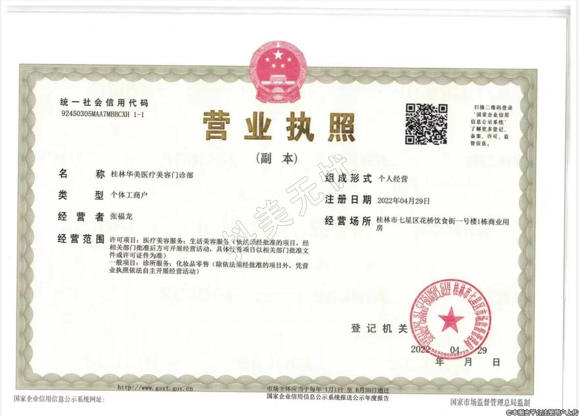 機構(gòu)名稱:桂林華美醫(yī)療美容門診部