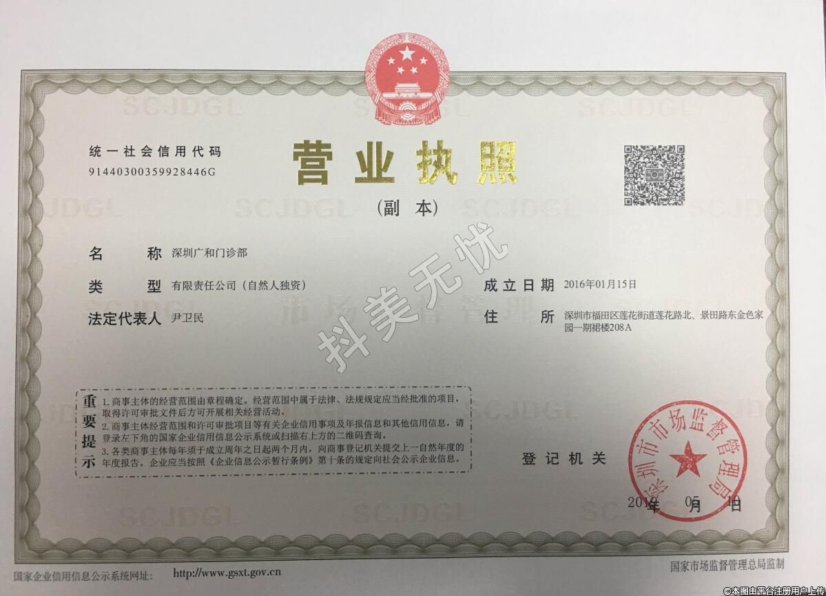 發(fā)證機關(guān):深圳市福錢區(qū)衛(wèi)生健康局