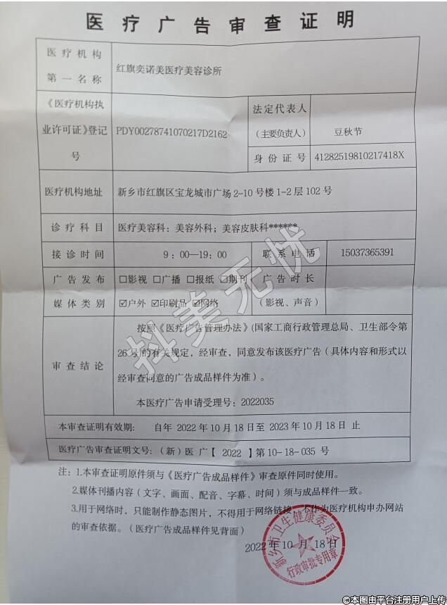 發(fā)證機關(guān):新鄉(xiāng)市紅旗區(qū)衛(wèi)生健康委員會
