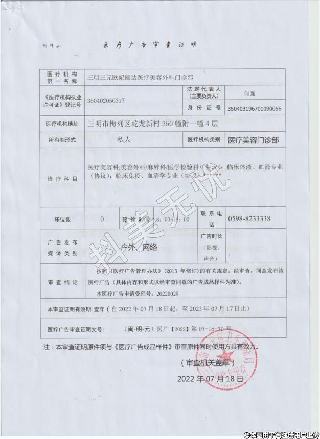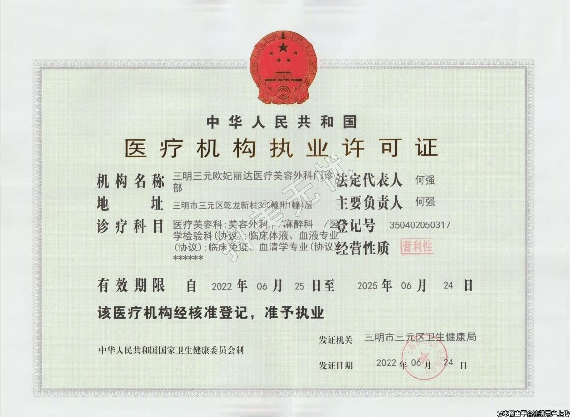 機構(gòu)名稱:三明三元歐妃麗達醫(yī)療美容外科門診部