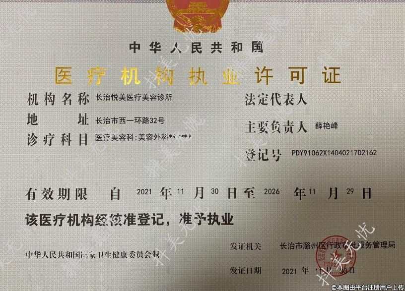 長治悅美醫(yī)療美容是經(jīng)長治衛(wèi)計委及長治市高新區(qū)衛(wèi)計委批準設(shè)立的一所正規(guī)醫(yī)療整形美容機構(gòu)。