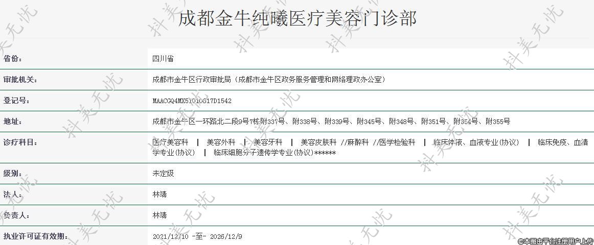 機(jī)構(gòu)名稱:成都金牛純曦醫(yī)療美容門診部