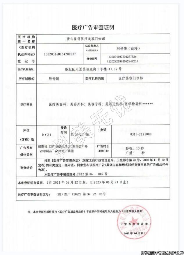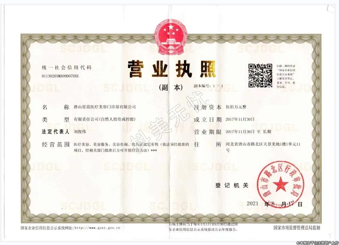 機構(gòu)名稱:唐山星范朝陽道醫(yī)療美容門診部