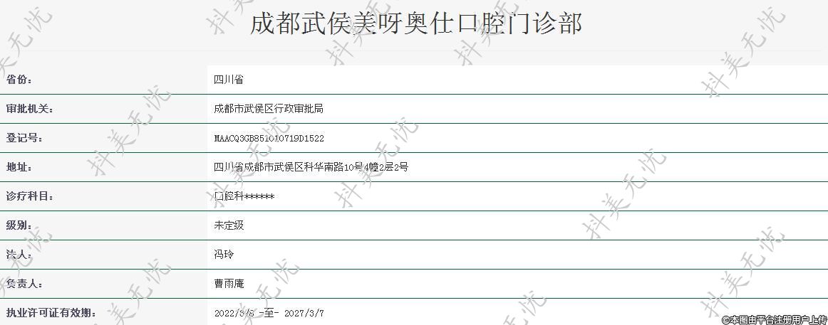 機(jī)構(gòu)名稱:成都武侯美呀奧仕口腔門診部