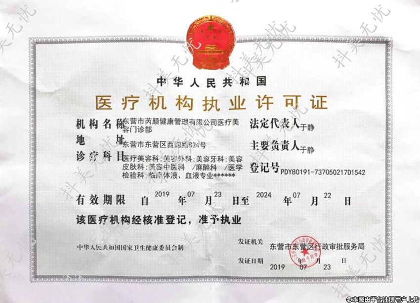 機構名稱:東營市芮顏健康管理有限公司醫(yī)療美容門診部