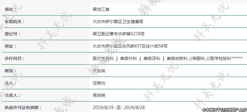 登記號(hào):黑衛(wèi)醫(yī)證營字慶薩第0278號(hào)