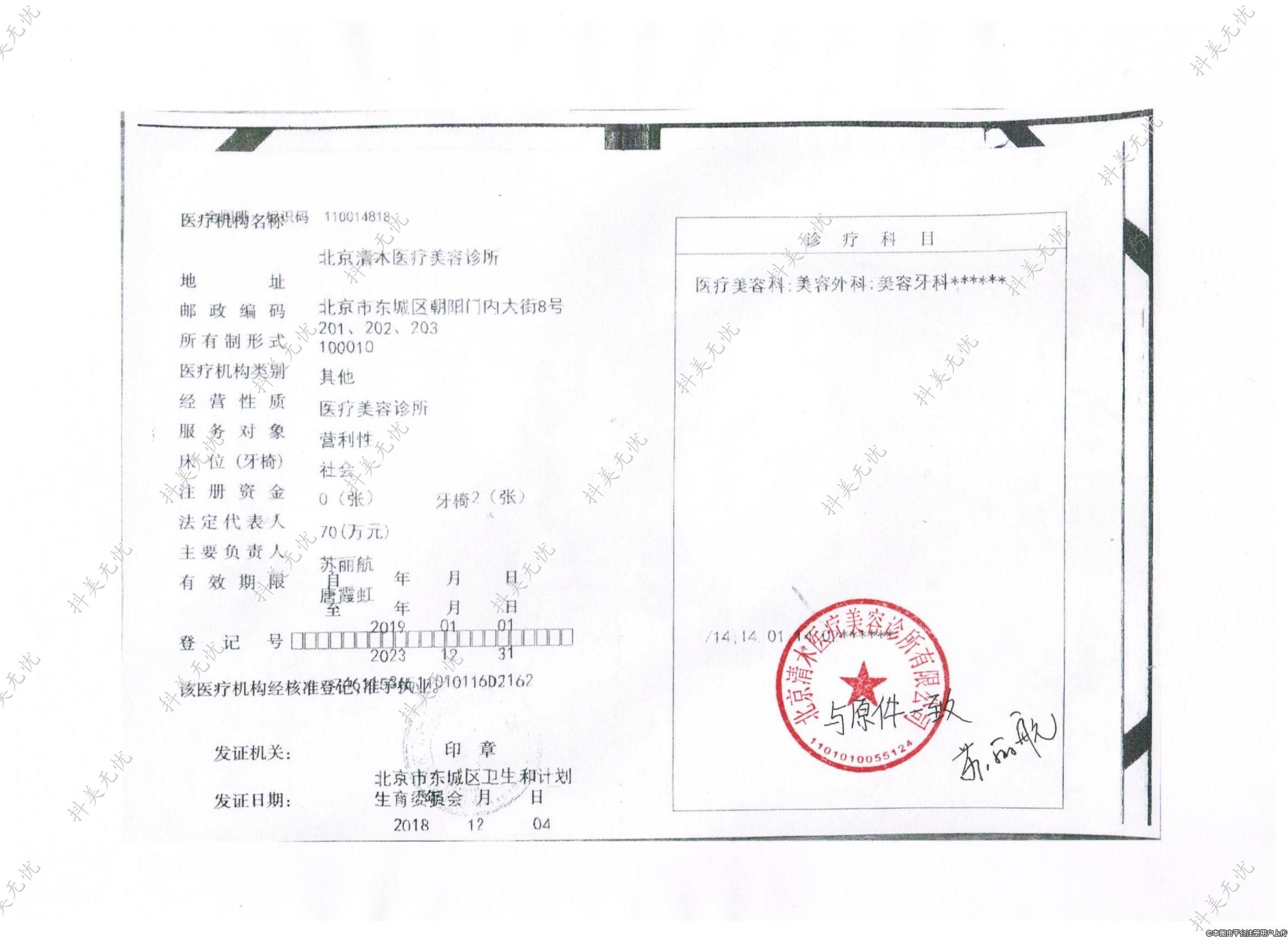 醫(yī)療機(jī)構(gòu)名稱:北京清木醫(yī)療美容診所