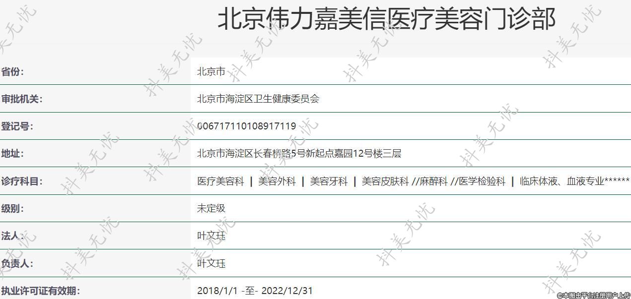 機構(gòu)名稱:北京偉力嘉美信醫(yī)療美容門診部