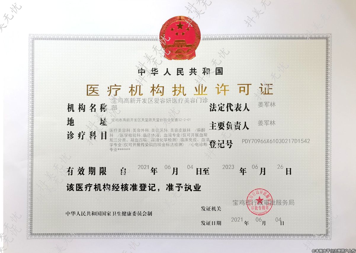 機構(gòu)名稱:寶雞高新開發(fā)區(qū)愛容妍醫(yī)療美容門診部