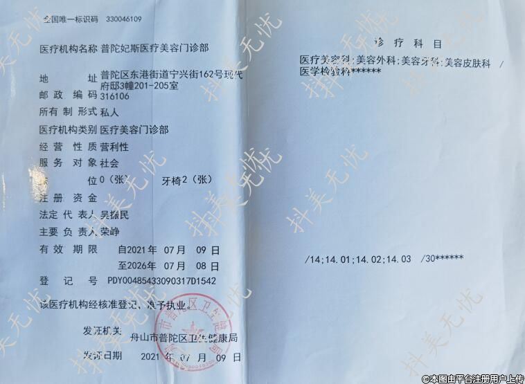 發(fā)證機(jī)關(guān):舟山市普陀區(qū)衛(wèi)生健康局