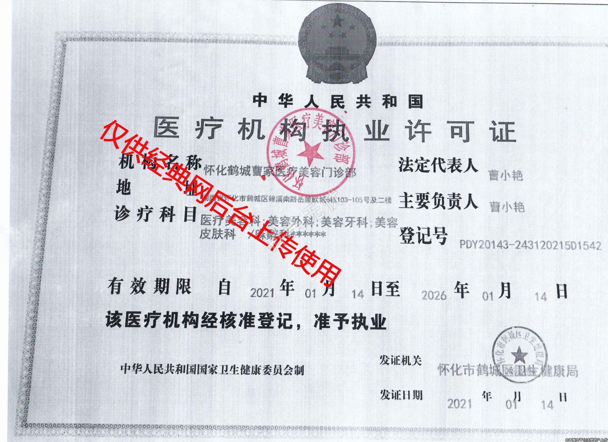 醫(yī)療機構(gòu)名稱:懷化鶴城曹家醫(yī)療美容門診部