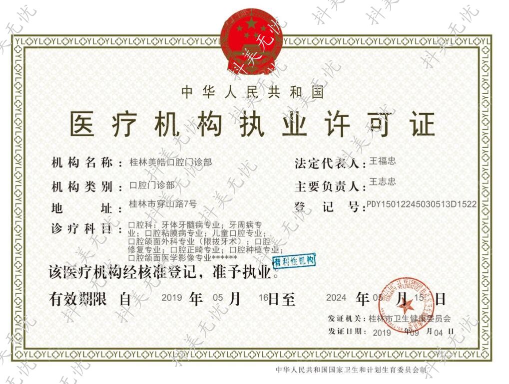 機構(gòu)名稱:桂林美皓口腔門診部