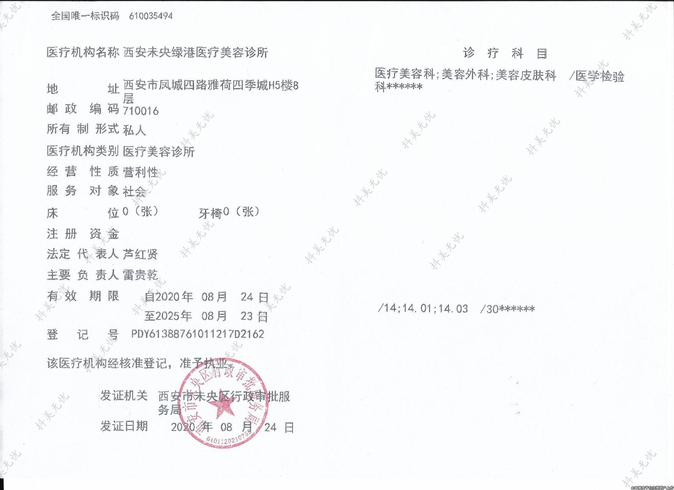醫(yī)療機(jī)構(gòu)名稱:西安未央綠港醫(yī)療美容診所